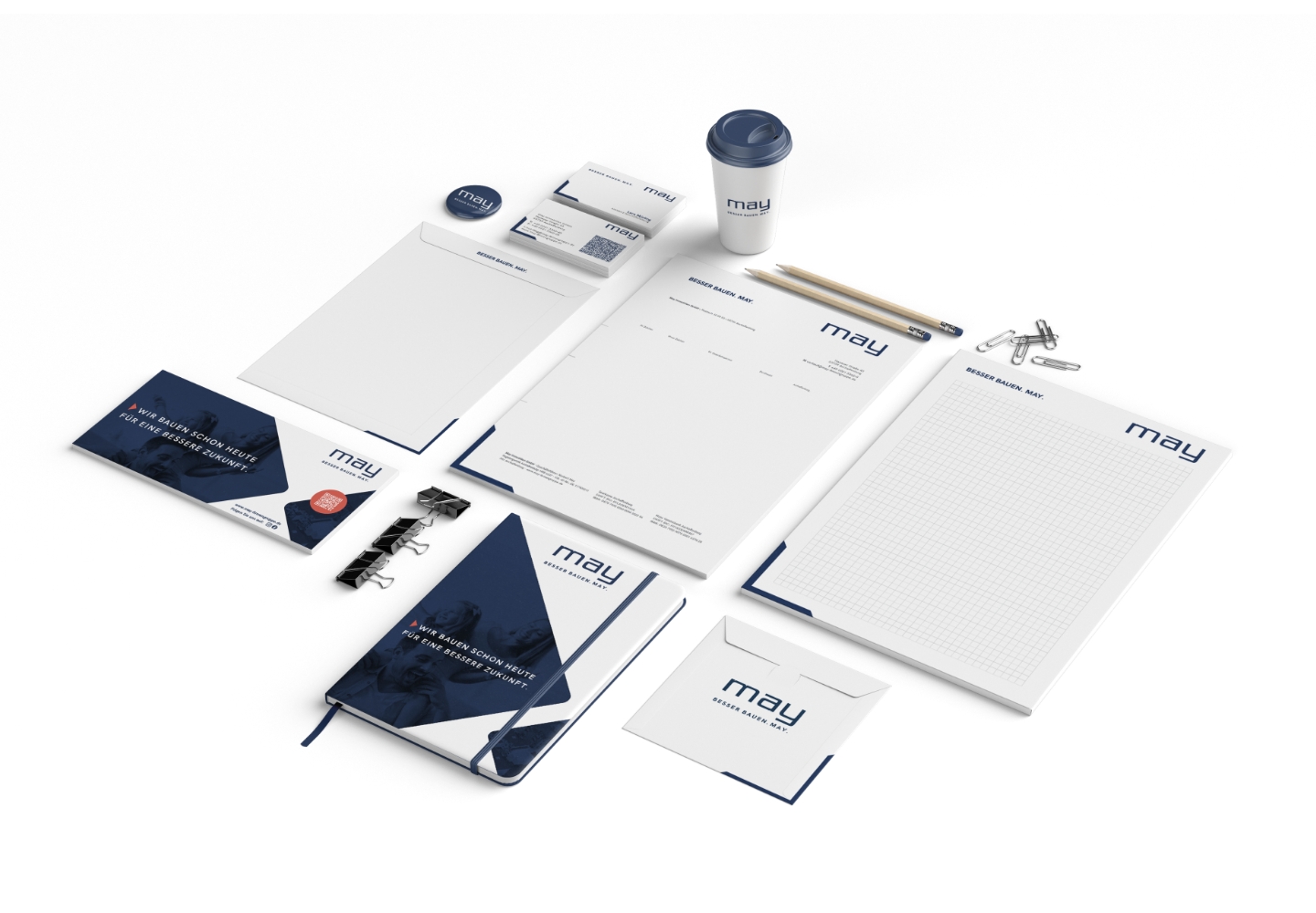 Das erarbeitete Selbstverständnis wird nun im gesamten Auftritt sichtbar. Die Gewissenhaftigkeit und Klarheit spiegeln sich im angepassten Logo und in einem neuen, prägnanten Claim wider: „BESSER BAUEN. MAY.“