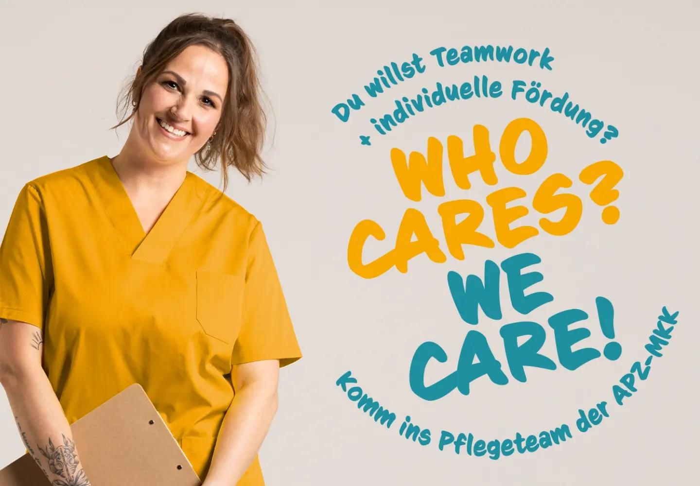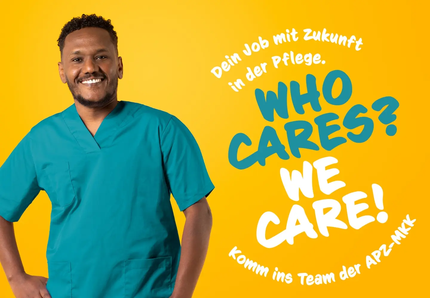 Wir entwickelten eine ganzheitliche Recruiting-Kampagne, die Haltung klar in den Mittelpunkt stellt. Unter dem Claim „Who cares? We care.“ kommunizieren wir Wertschätzung direkt und emotional. Ein authentisches Mitarbeitenden-Shooting bildete die Grundlage für Key Visual, Bildwelt und Social Assets. Parallel entstand eine mobil optimierte Landingpage, die Bewerbungen so einfach wie möglich macht.